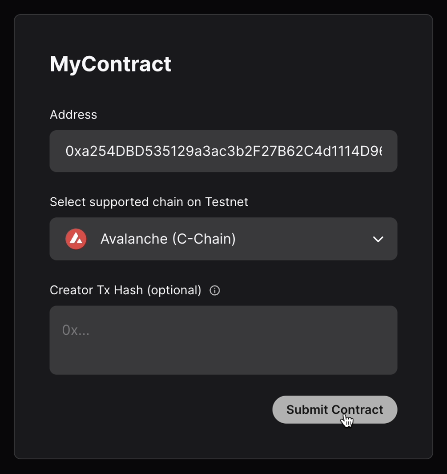 After submitting the contract for verification, your request will be processed shortly and you will see the below message.